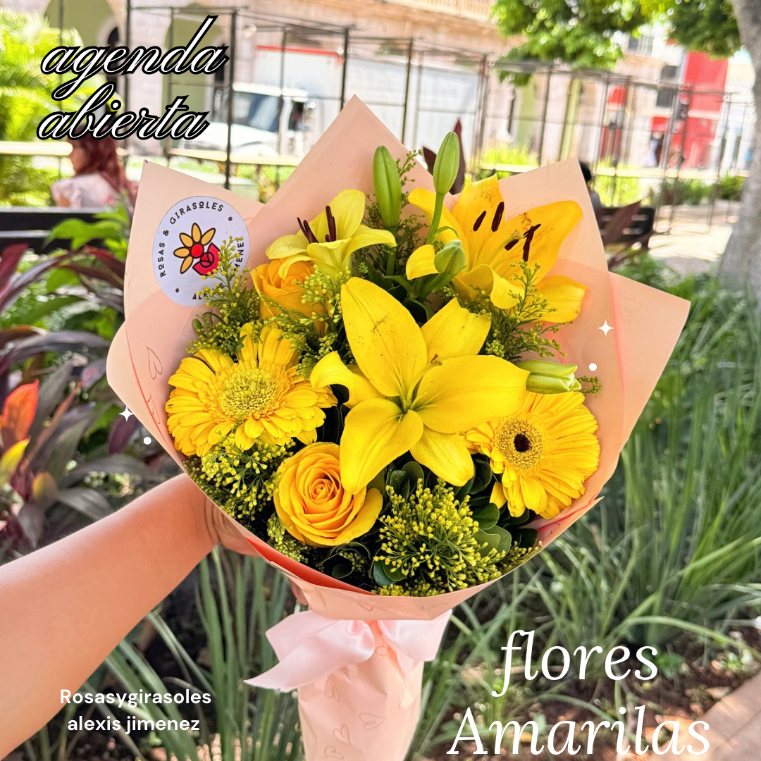Lirios amarillos en botón y en plena apertura, que aportan elegancia y frescura.