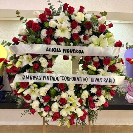 Arreglo floral vertical en tonos blancos que transmite paz, elegancia y armonía.